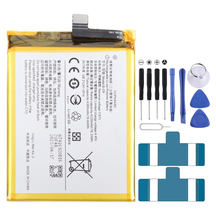 Li-Polymer Battery Replacement, For vivo X60 V2045 B-O9 4300mAh, For vivo Y52s 5G V2057A B-O8 5000mAh, For vivo iQOO 5 5G V2024A B-N9 4500mAh, For vivo iQOO 3 5G B-K7 4400mAh, For vivo NEX 3S 5G B-G9 4500mAh, For vivo iQOO Z6 B-V8 5000mAh ...