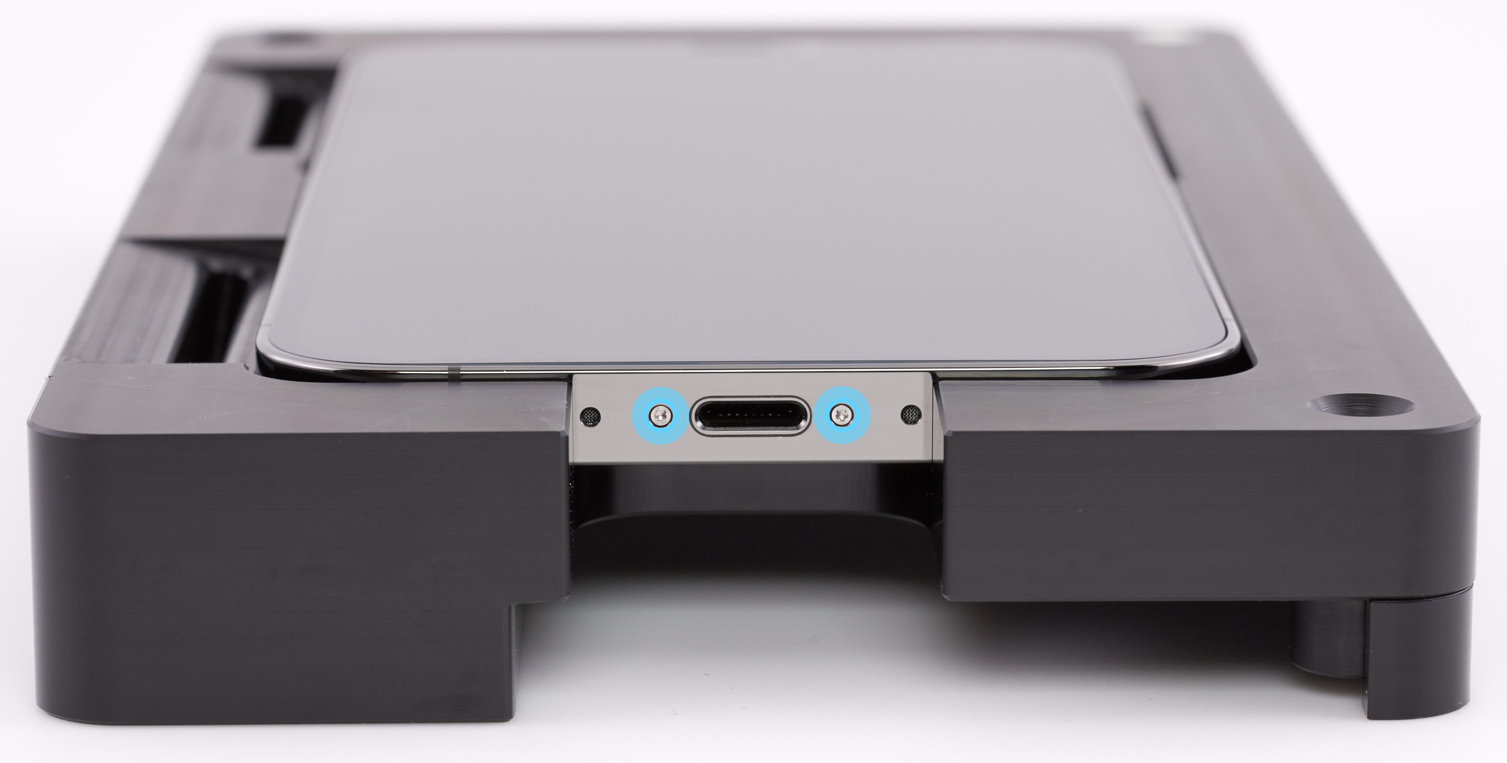 Gently insert the iPhone into the heated display pocket with the display faceup and the Lightning connector facing the bottom of the pocket.