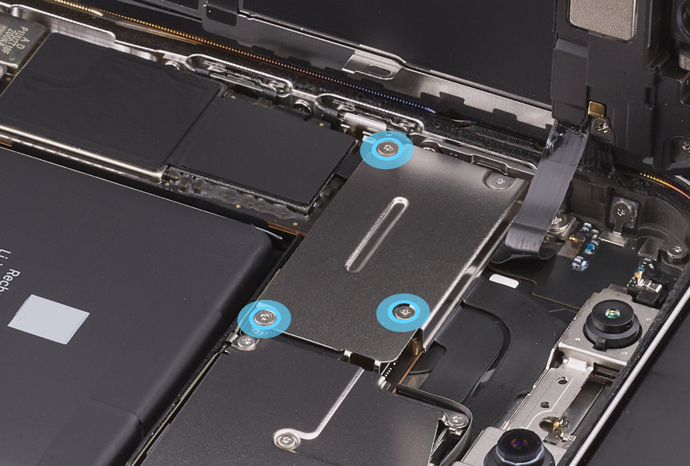 Caution: Don’t touch the TrueDepth camera assembly, grounding springs, or nearby parts.