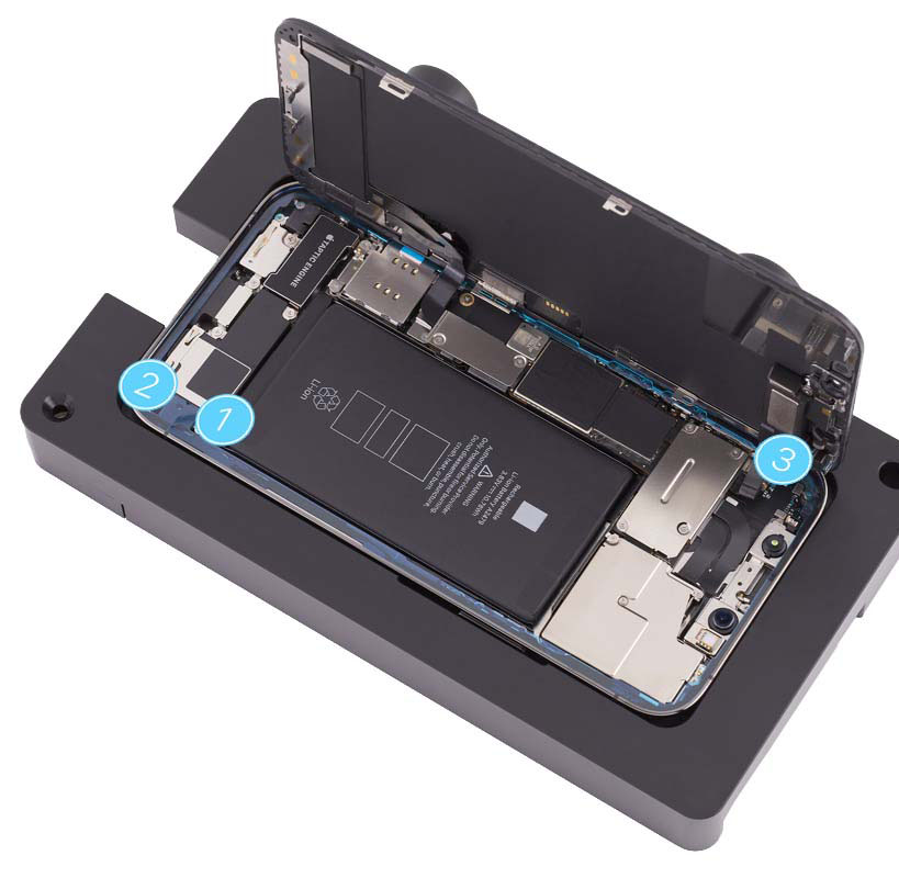 Place the enclosure in the repair tray with the Lightning connector facing the cutout.
