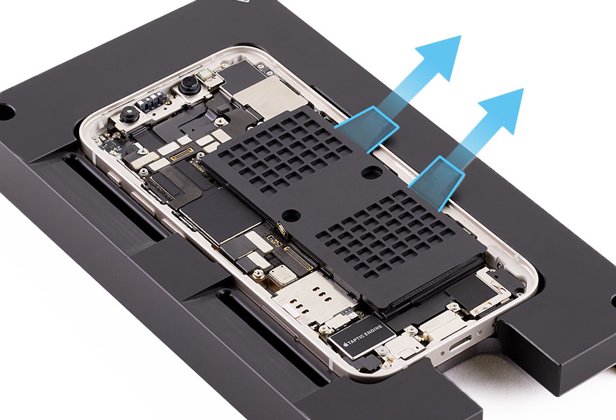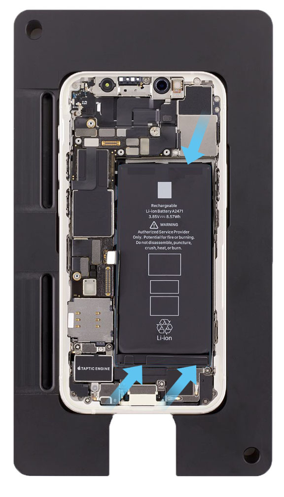Place the enclosure in the repair tray with the Lightning connector facing the cutout.