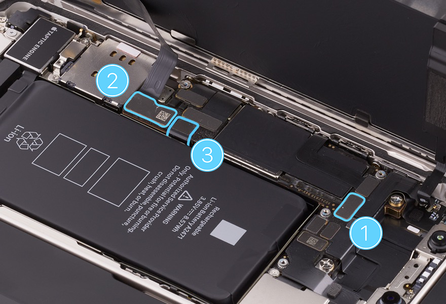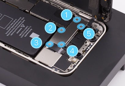 Caution: You must disconnect the battery flex cable first to ensure that the iPhone remains turned off.