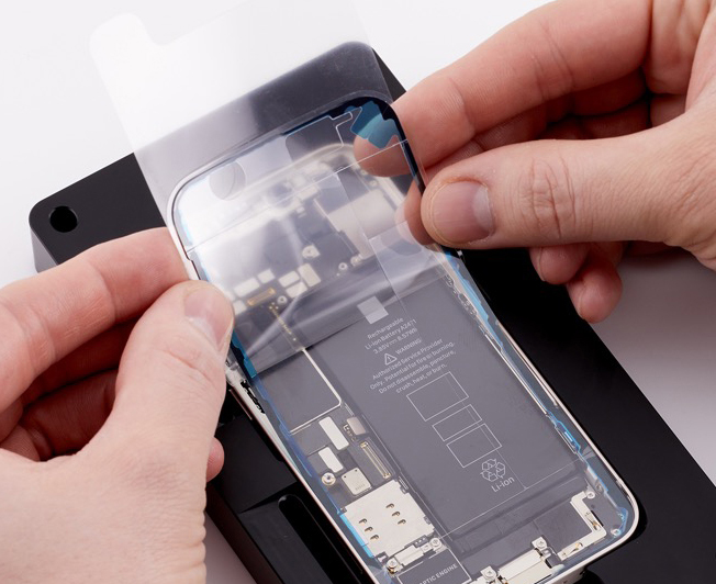 If you’re installing a replacement display, peel the protective liner from the top and underside of it.