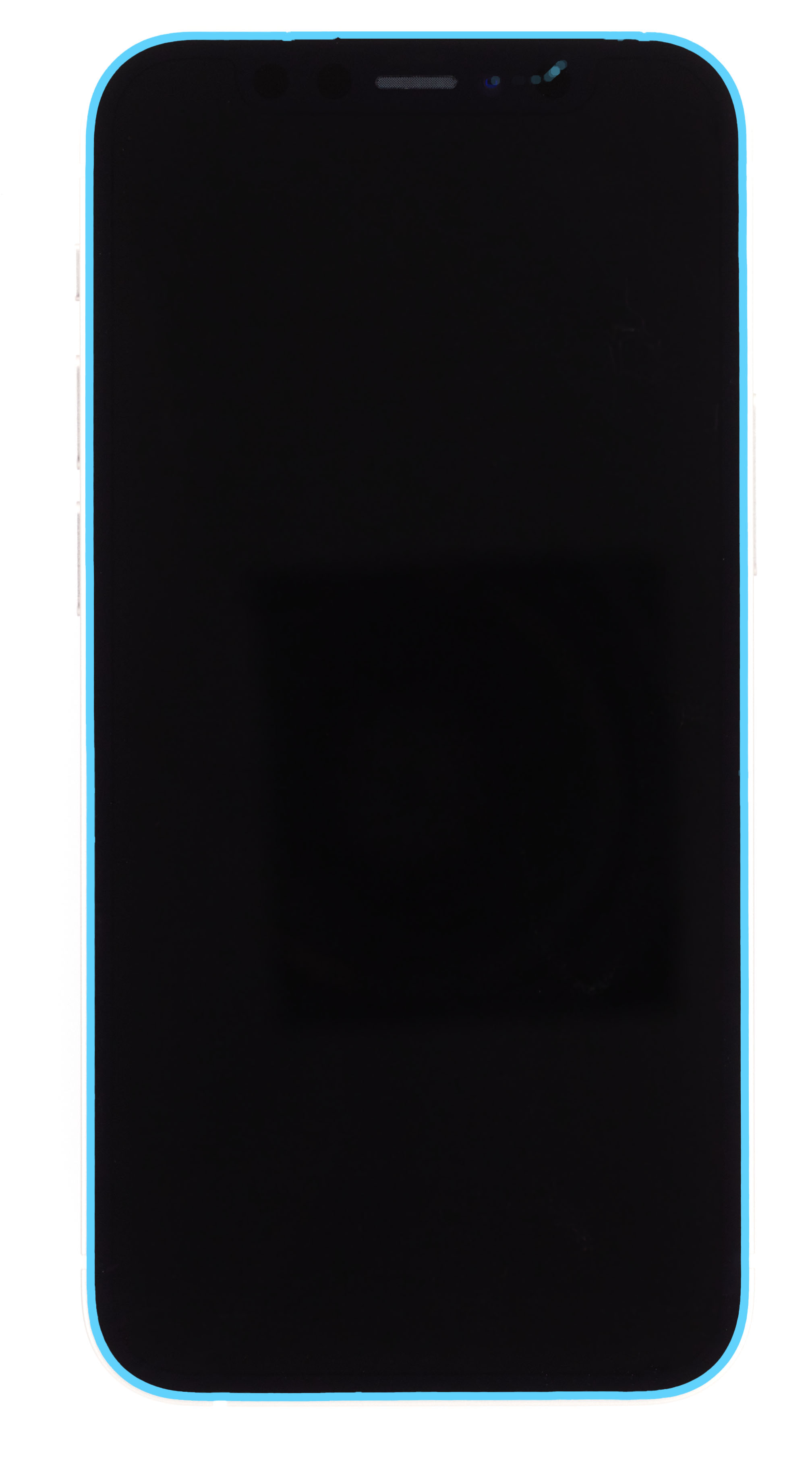 Align the replacement display adhesive over the enclosure with the top holes over the TrueDepth camera assembly and the bottom tab on the left.