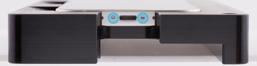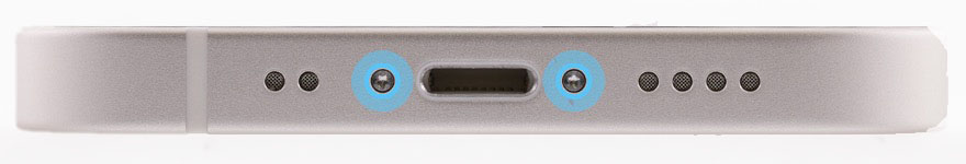 Use a torque driver and the Torx security bit to remove the two security screws, one from each side of the Lightning connector. Set aside the screws.
