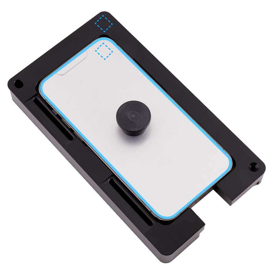 Gently insert the iPhone into the heated display pocket with the display faceup and the Lightning connector facing the bottom of the pocket.