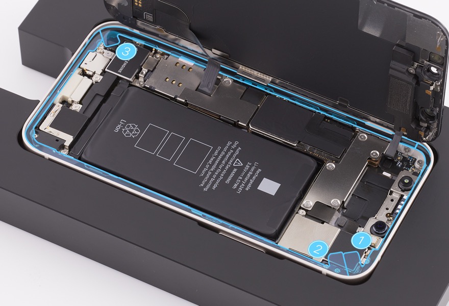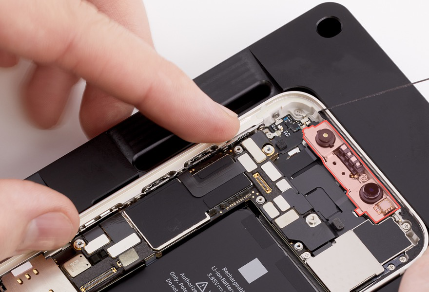 Caution: Don’t touch the TrueDepth camera assembly, grounding springs, or nearby parts.