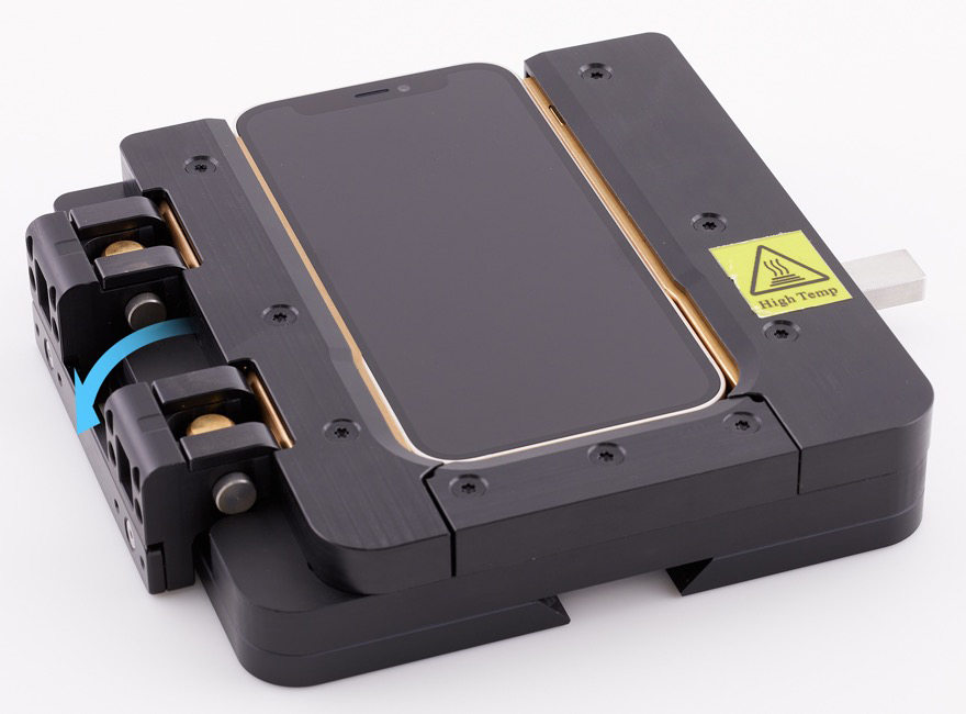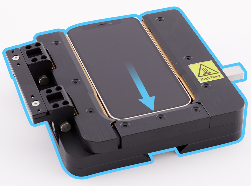 Position the repair tray with the iPhone in the display press. Pull down the lever until the display press locks.