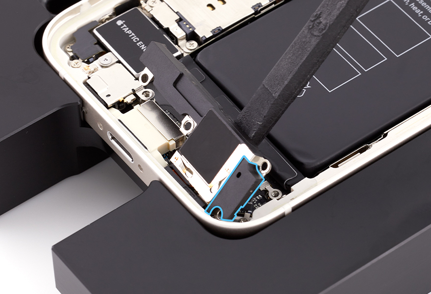 Place the enclosure in the repair tray with the Lightning connector facing the cutout.