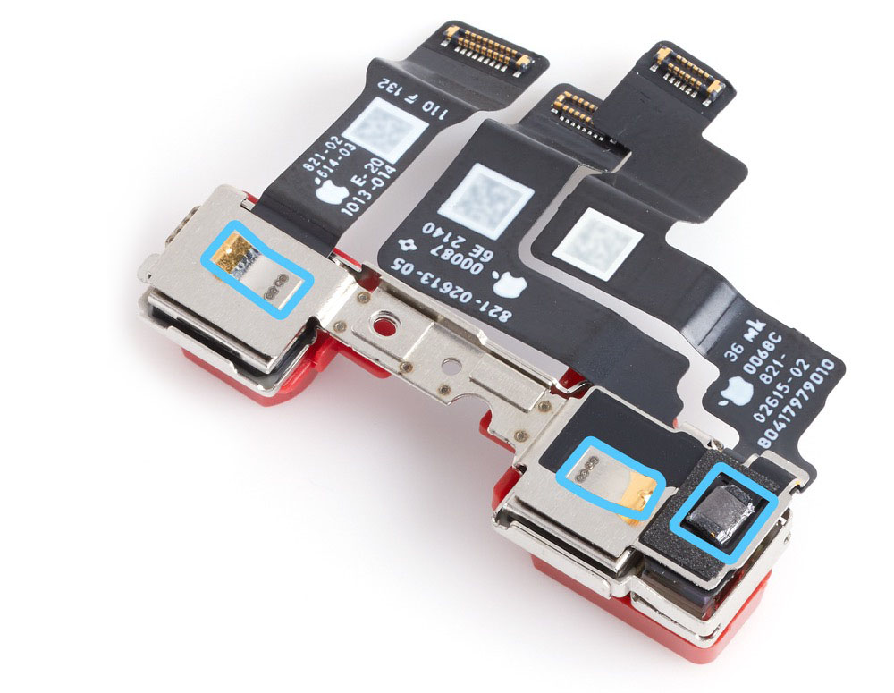 Use tweezers to remove the protective lens caps from the TrueDepth camera.