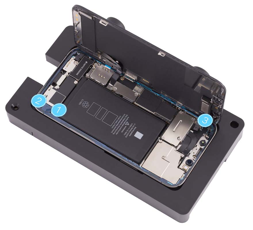 Place the enclosure in the repair tray with the Lightning connector facing the cutout.