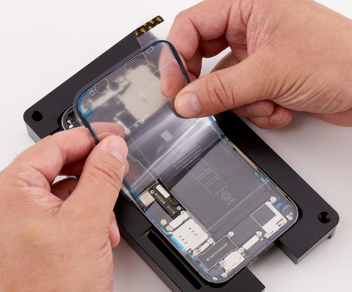 If you’re installing a replacement display, peel the protective liner from its top and underside.