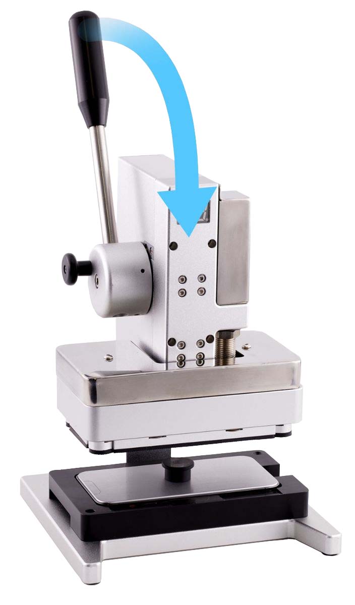 Position the repair tray with the iPhone in the display press. Pull down the lever until the display press locks.