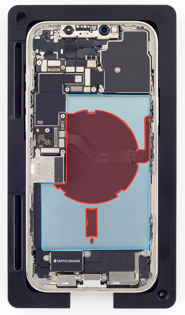 Caution: Don’t use ethanol wipes or IPA wipes on the areas outlined in red. Ethanol or isopropyl alcohol may damage the polyester film and wireless charging unit.