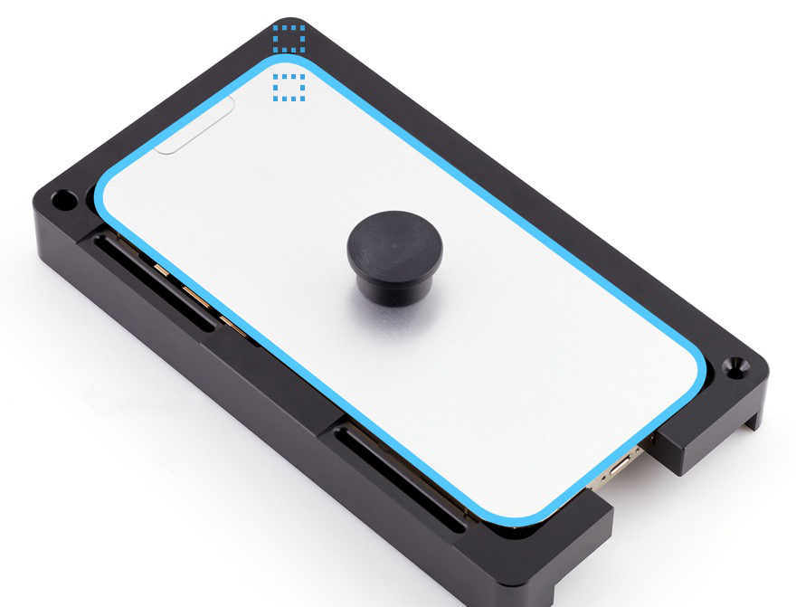 Gently insert the iPhone into the heated display pocket with the display faceup and the Lightning connector facing the bottom of the pocket.