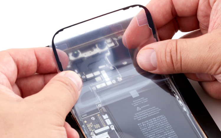 Inspect the display adhesive to ensure that it’s in the correct position and isn’t damaged or wrinkled. If the adhesive is damaged, remove it and apply replacement adhesive.