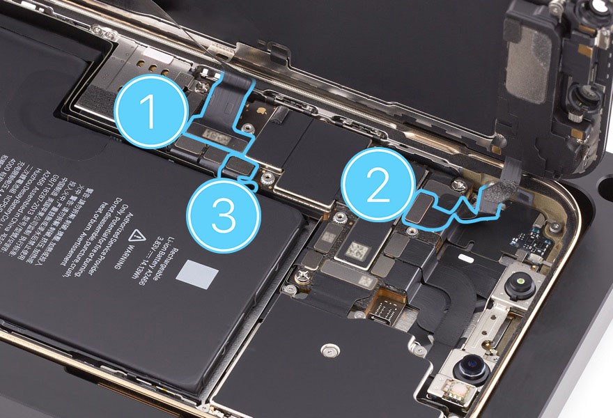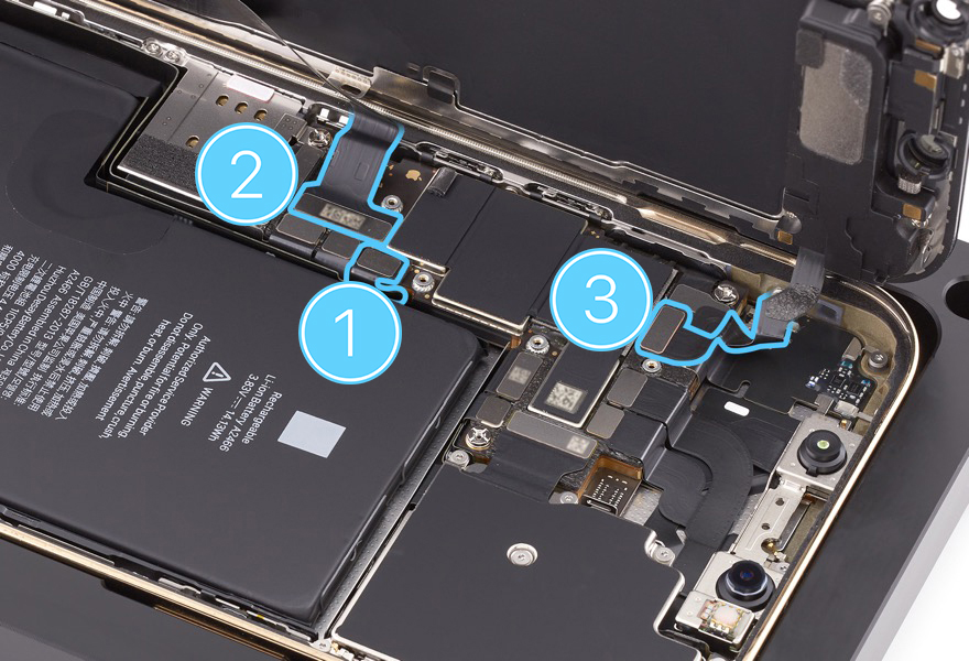 Caution: Don’t touch the TrueDepth camera assembly, grounding springs, or nearby parts.