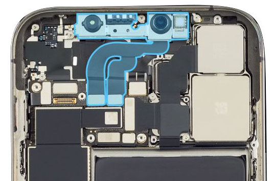 Note: One TrueDepth camera flex cable covers the third camera flex cable.
