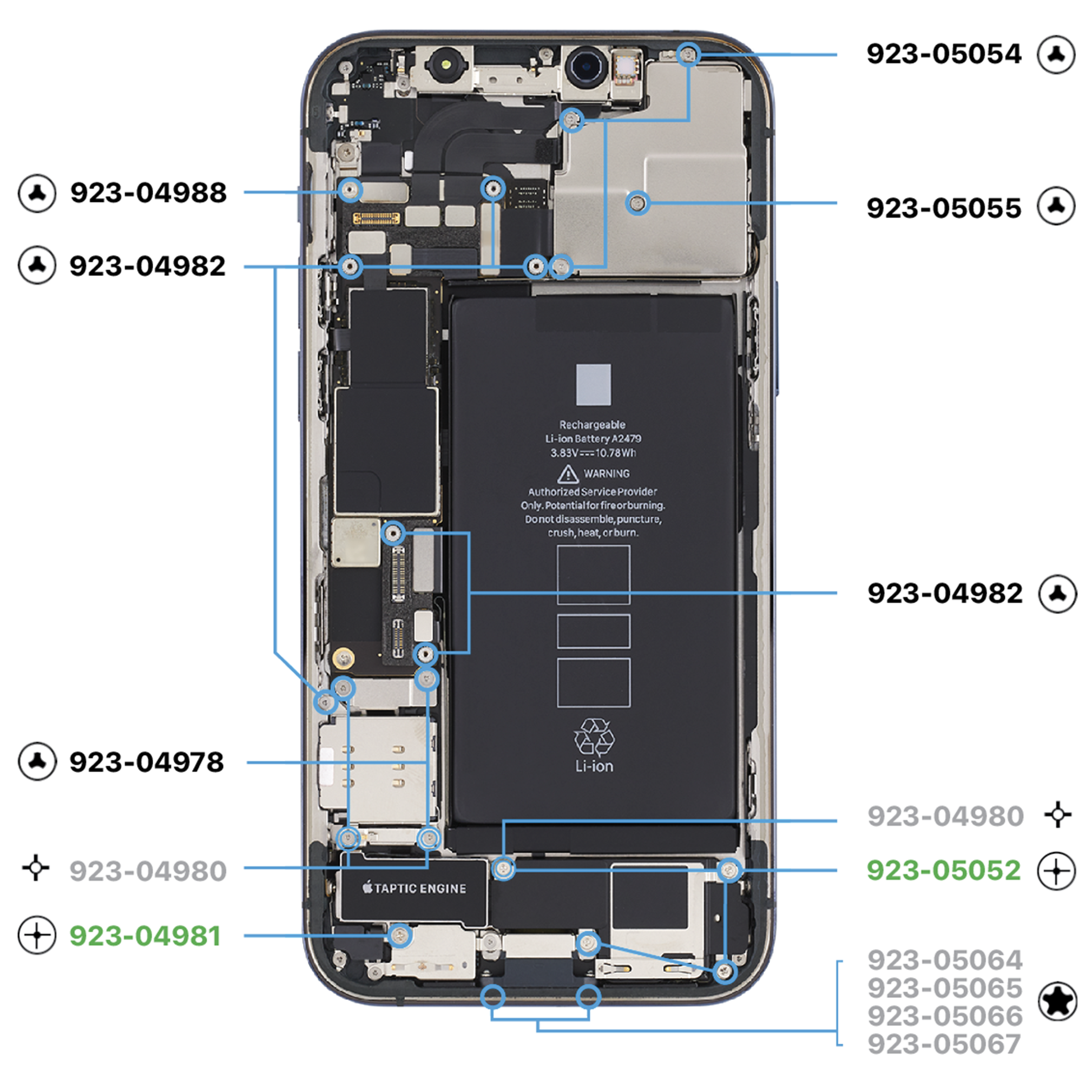 Never reinstall a screw after it has been removed. Install only new screws. iPhone screw grooves are covered in adhesive that can’t be reused.