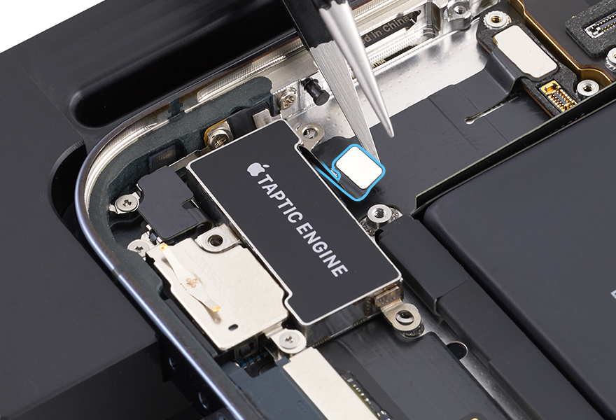 Use ESD-safe tweezers to remove the Taptic Engine.