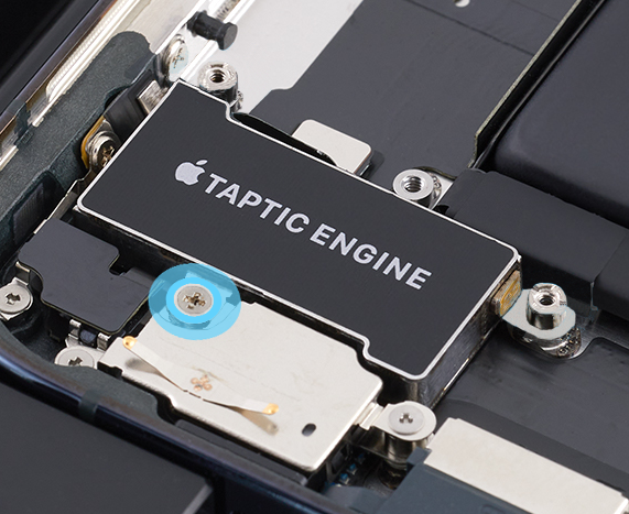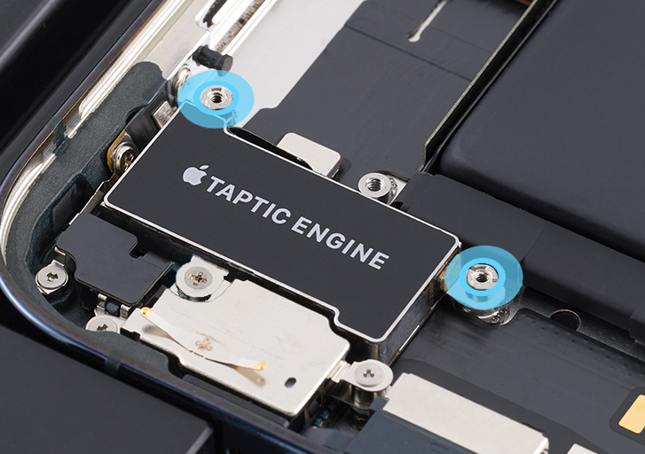 Use a torque driver and the super screw bit to remove the two super screws from the corners of the Taptic Engine. Set aside the screws.