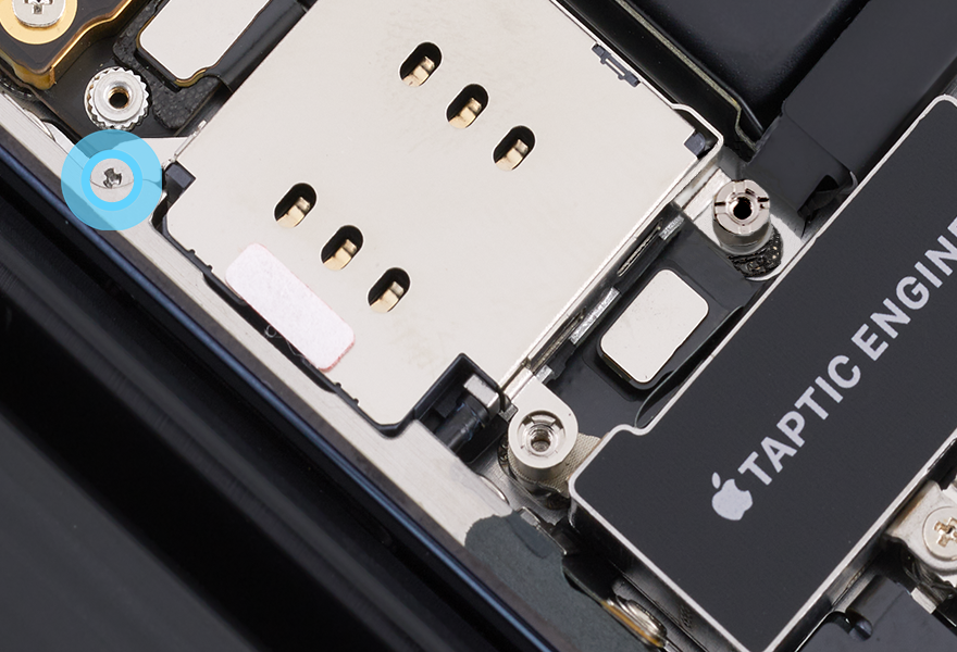 Use the black torque driver and Micro stix bit to install four new trilobe screws (923-04978) into the SIM reader and Taptic Engine connector cowlings.