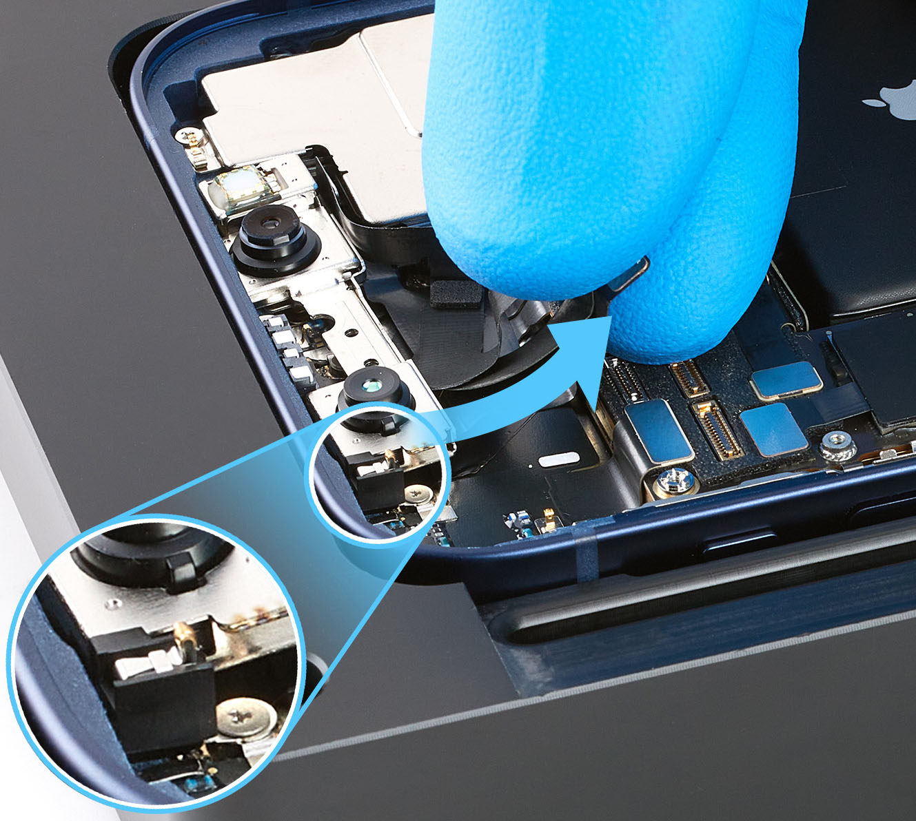 Note: One TrueDepth camera flex cable covers the third flex cable.