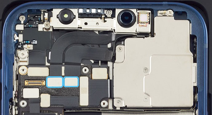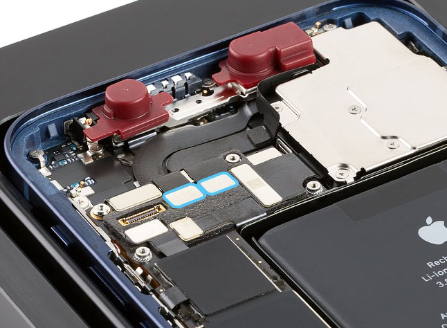 Inspect the back of the TrueDepth camera assembly to ensure that the grounding foam and grounding springs are intact. If either is missing or damaged, replace the TrueDepth camera assembly.