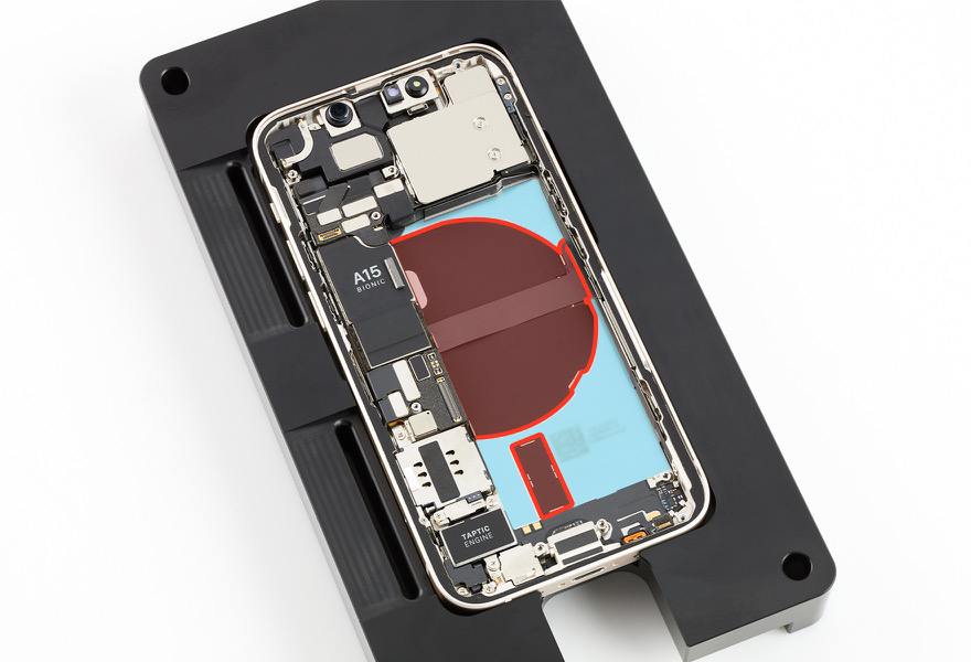 Place the enclosure in the repair tray with the Lightning connector facing the cutout.