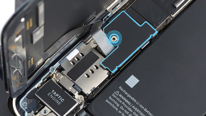 Caution: Failure to adhere the grounding foam may damage the display, Wi-Fi, or TrueDepth camera.