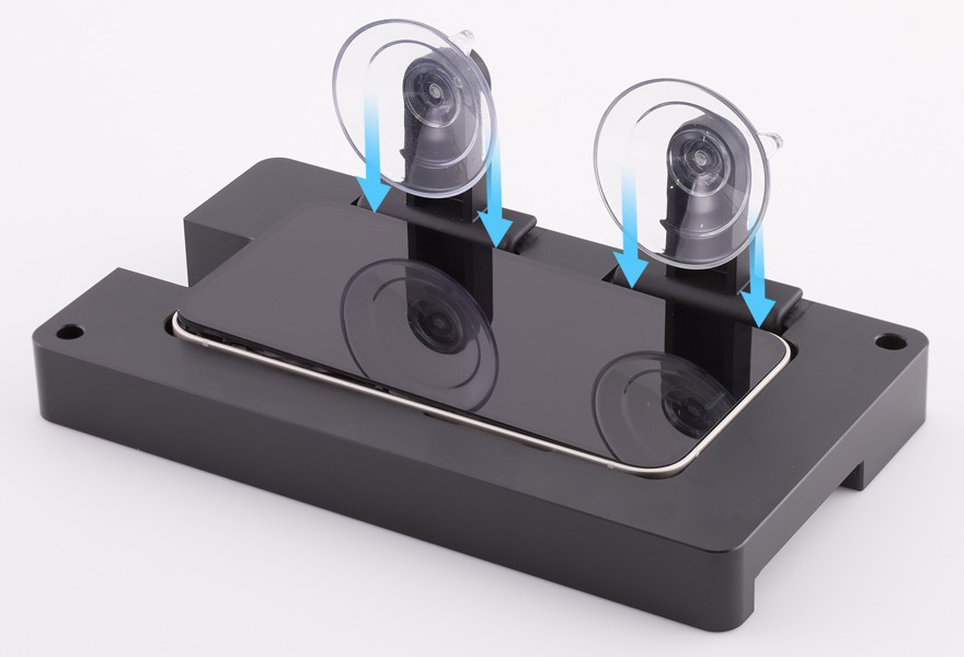 Turn the knob on the fixture clockwise to lower the suction cup as close to the iPhone as possible without touching the iPhone.