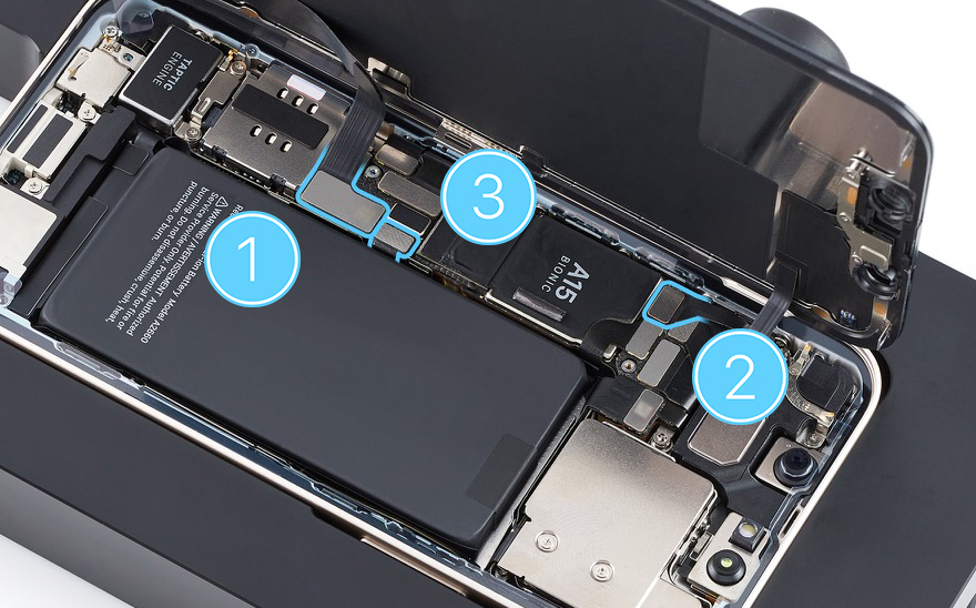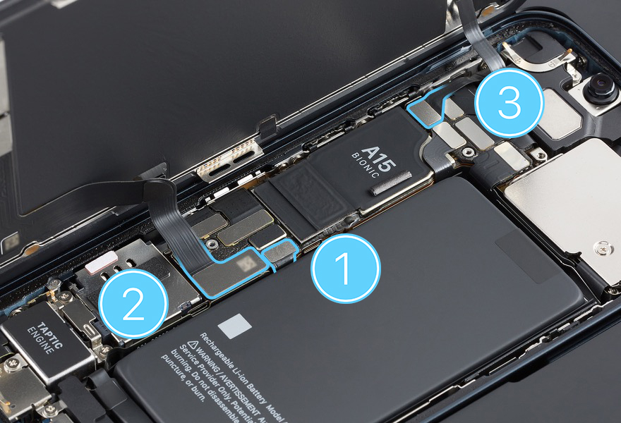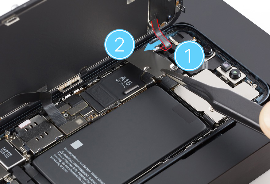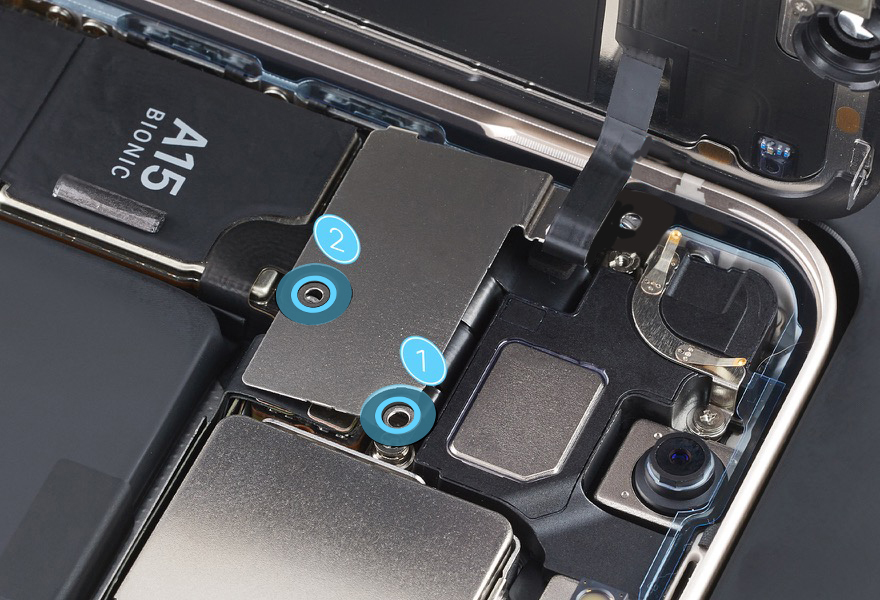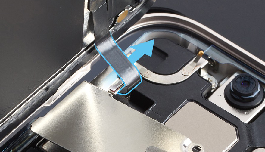 Caution: Don’t touch the TrueDepth camera assembly, grounding springs, or nearby parts.
