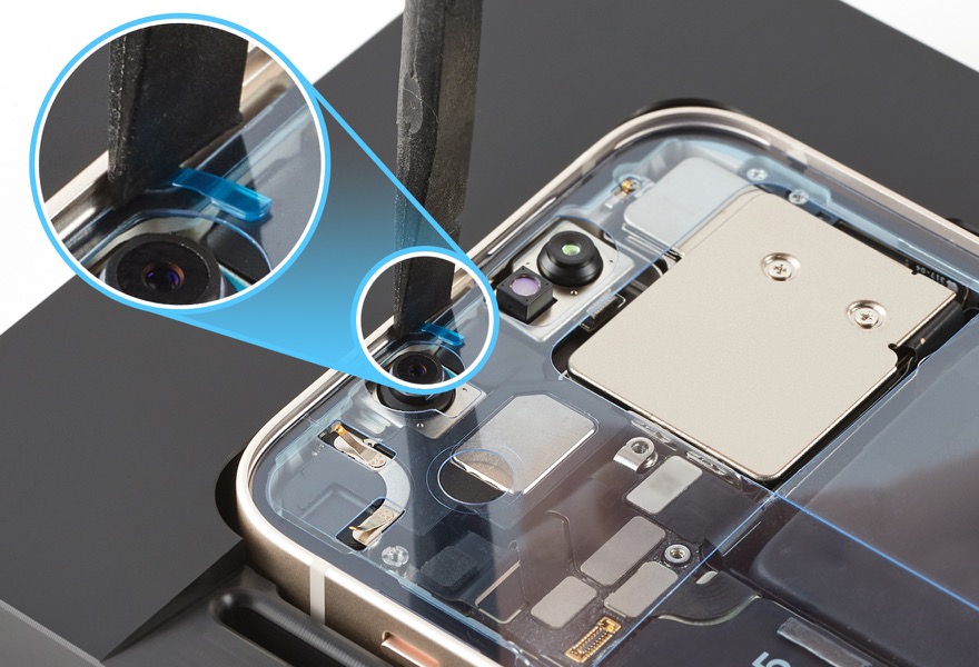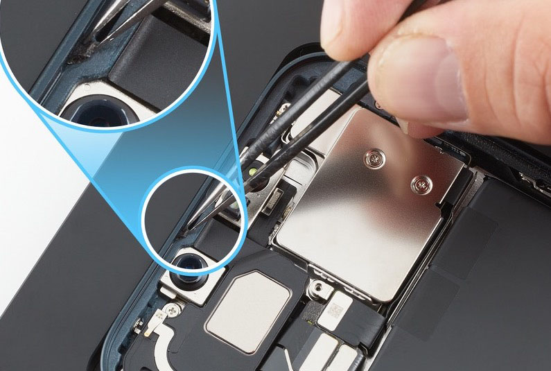 To avoid damaging the lenses, don’t touch the TrueDepth camera assembly or nearby parts.