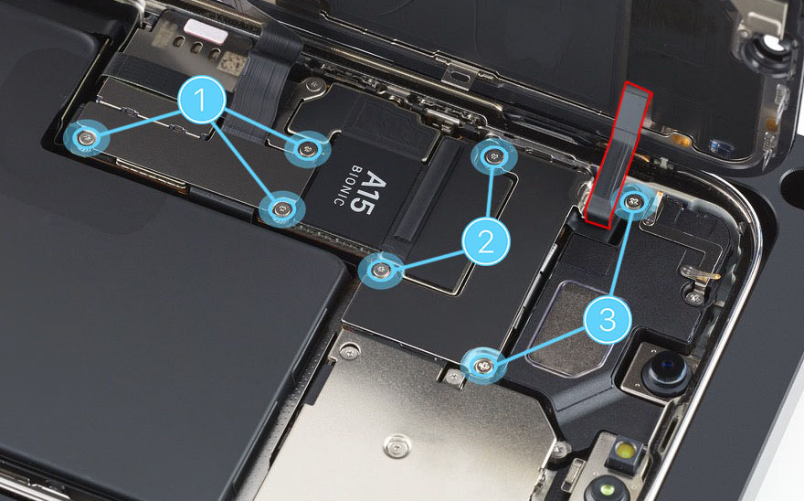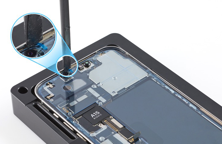 Caution: Don’t touch the TrueDepth camera assembly, grounding springs, or nearby parts.