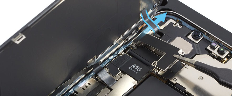 To avoid damaging the lenses, don’t touch the TrueDepth camera assembly or nearby parts.