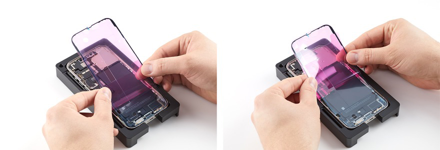 If you’re installing a replacement display, peel the protective liner from the top and underside of it.