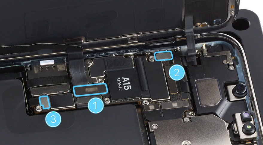 Caution: Failure to adhere the grounding foam may damage the display, Wi-Fi, or TrueDepth camera.