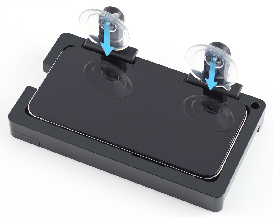 Turn the knob on the fixture clockwise to lower the suction cup as close to the iPhone as possible without touching the iPhone.