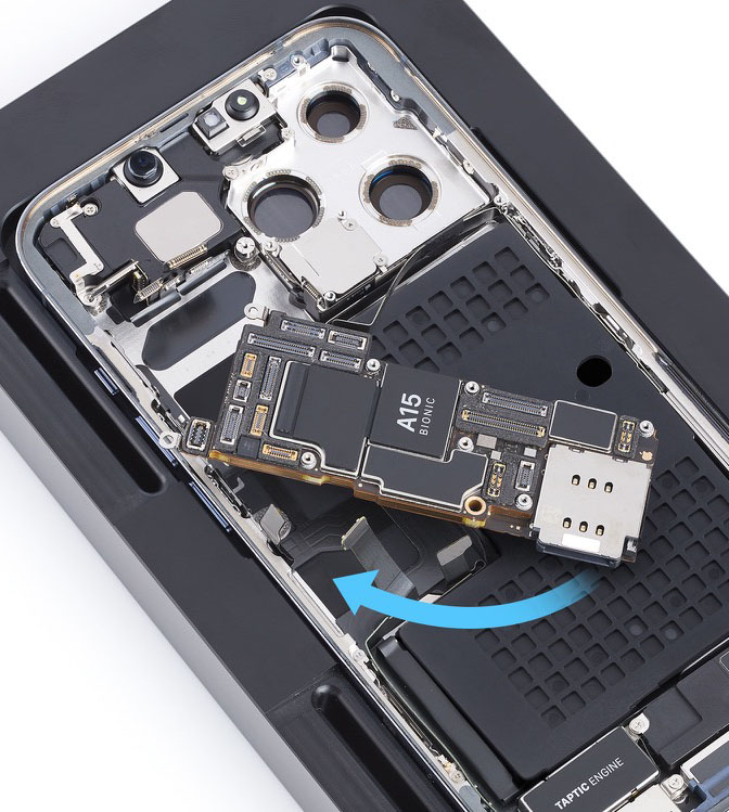 Don’t damage the logic board while moving it. If damage occurs, replace the phone.