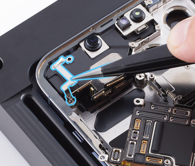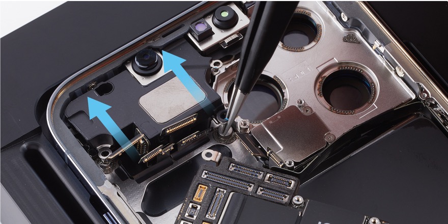 To avoid damaging the lenses, don’t touch the TrueDepth camera assembly or nearby parts.