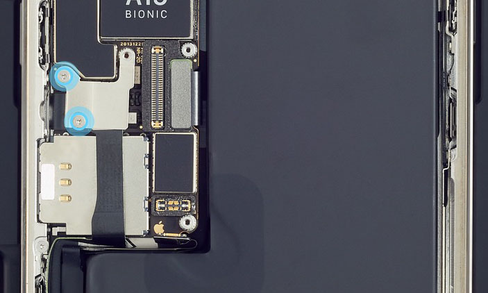 Don’t damage the Apple Pay flex cable while moving the logic board.