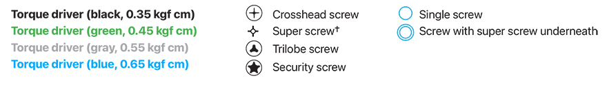 Use only the torque driver indicated to install new screws during reassembly. Both overtightened screws and loose screws can damage parts.