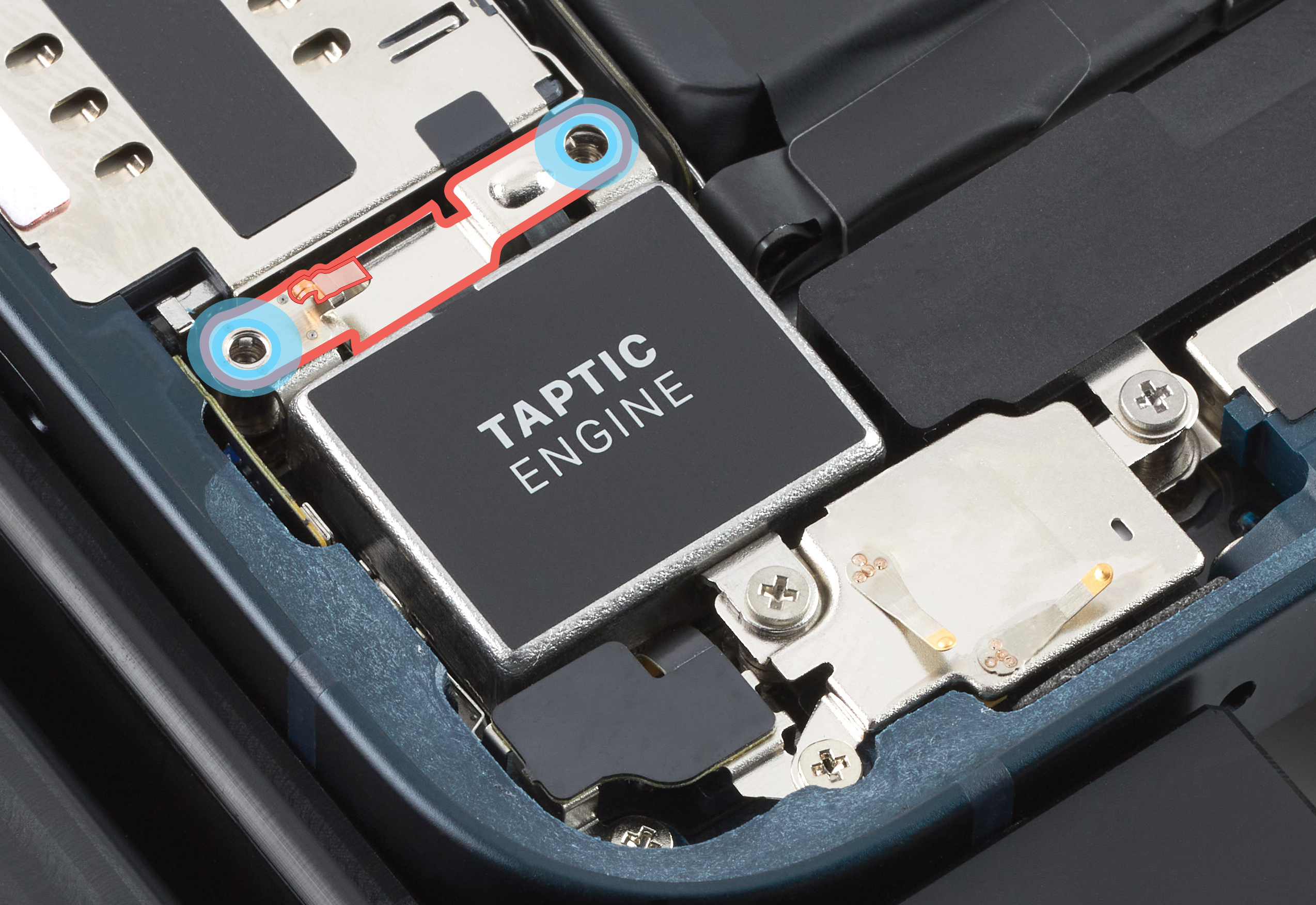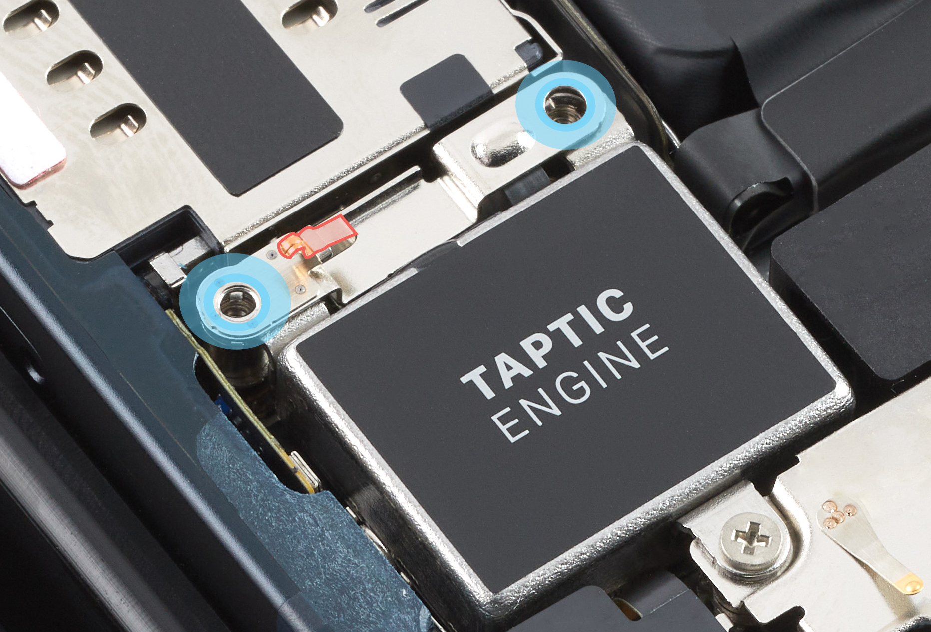 Use the blue torque driver and JCIS bit to install one new crosshead screw (923-07003) into the Taptic Engine.