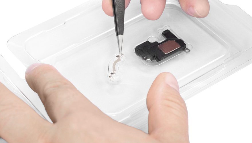Remove the replacement top speaker and grounding strap from the packaging.