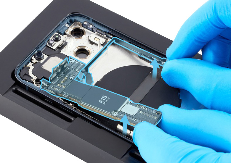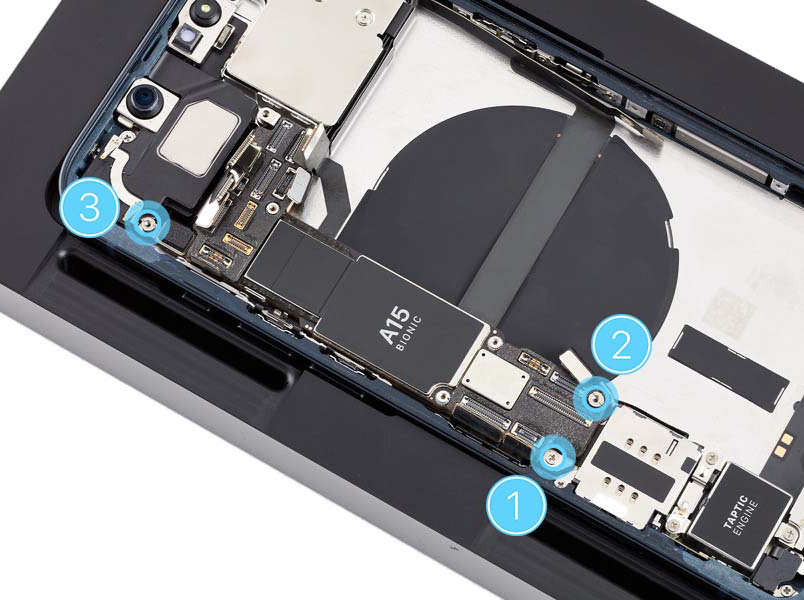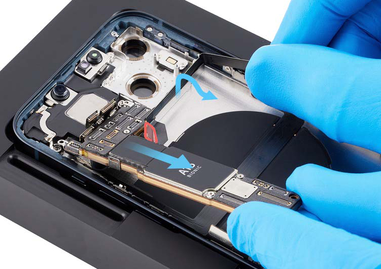 Don’t damage the logic board when removing it from the enclosure. If damage occurs, replace the iPhone.