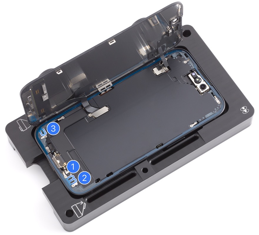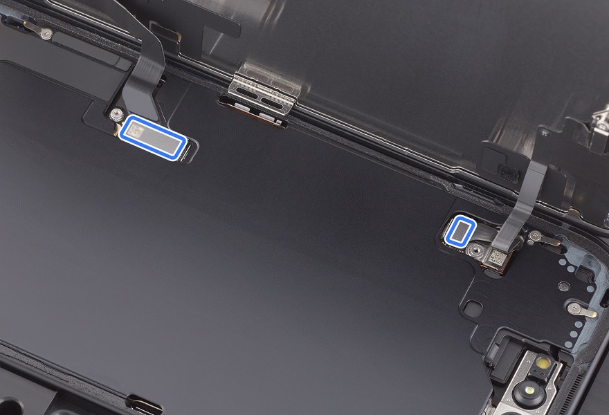 Caution: Don’t touch the TrueDepth camera assembly, grounding springs, or nearby parts.