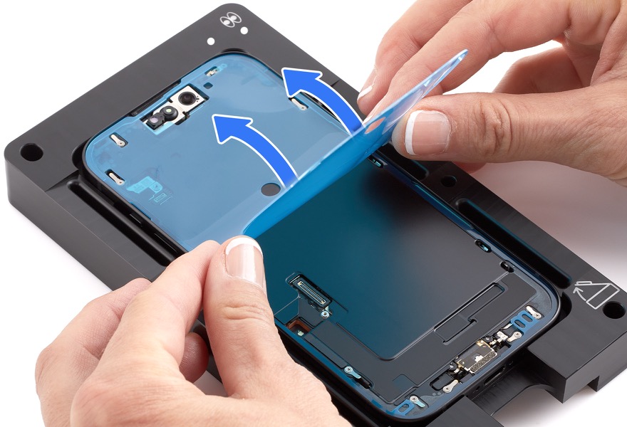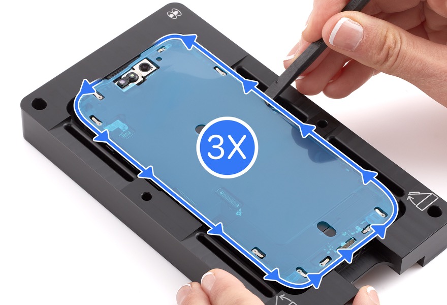 Don’t touch the TrueDepth camera assembly while adhering the display adhesive.