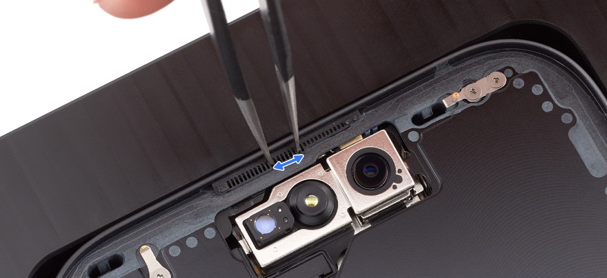 To avoid damaging the lenses, don’t touch the TrueDepth camera assembly or nearby parts.