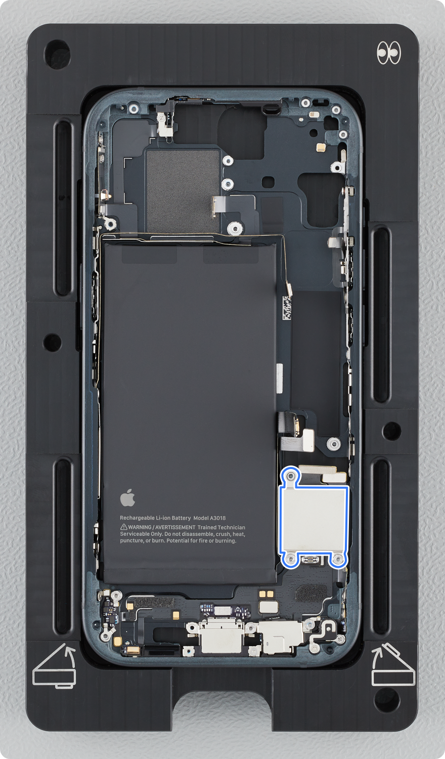 Display Back glass TrueDepth camera Top speaker Camera Bottom speaker Taptic Engine Logic board (See removal steps below.) SIM assembly (See removal steps below.) ![]() |