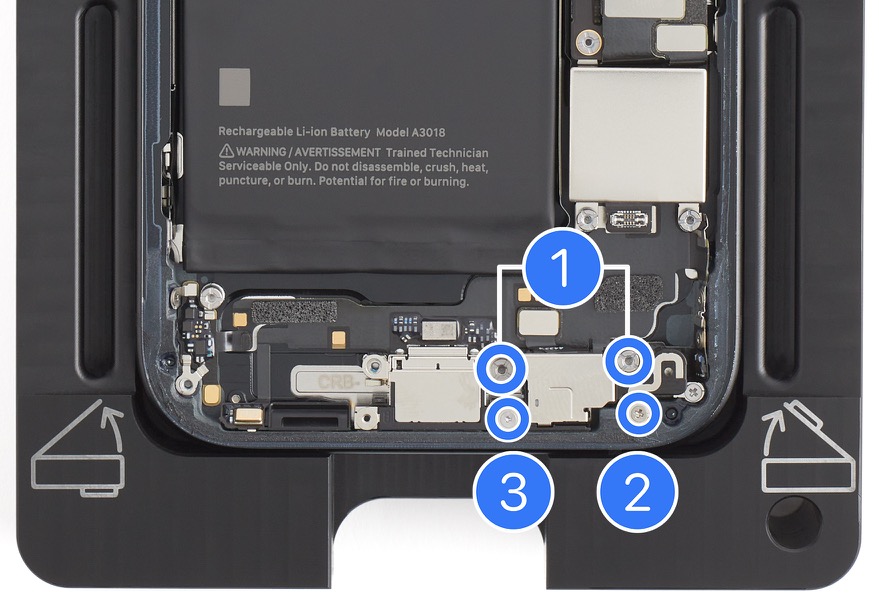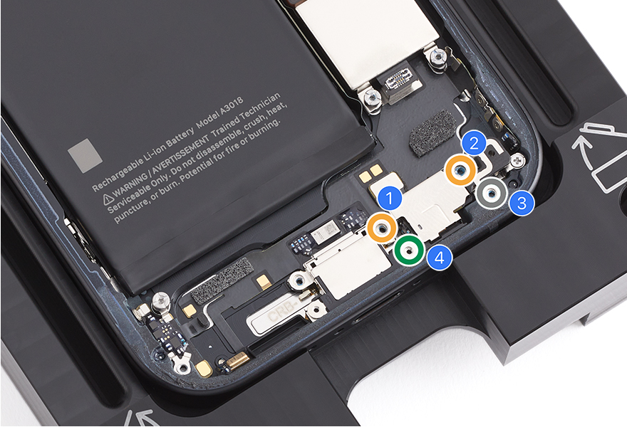 Use a torque driver and the Micro stix bit to remove one trilobe screw (3). Set aside the screw.